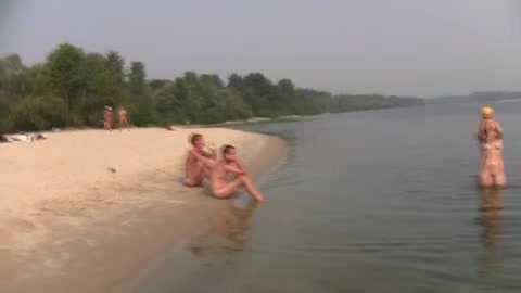 Молоденькие сучки разделись до гола на пляже и играют в воде в мячик.