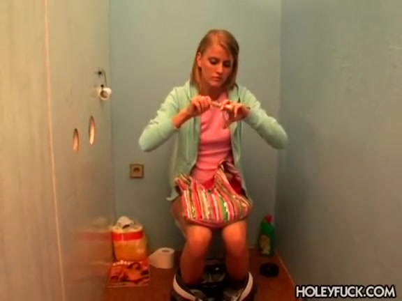 Девушка зашла в туалет просто пописать, а тут из дырки появился красивый большой член. Блондинке трудно было воздержаться от заманчивого предложения и она принялась жалостно сосать нежданного гостя.